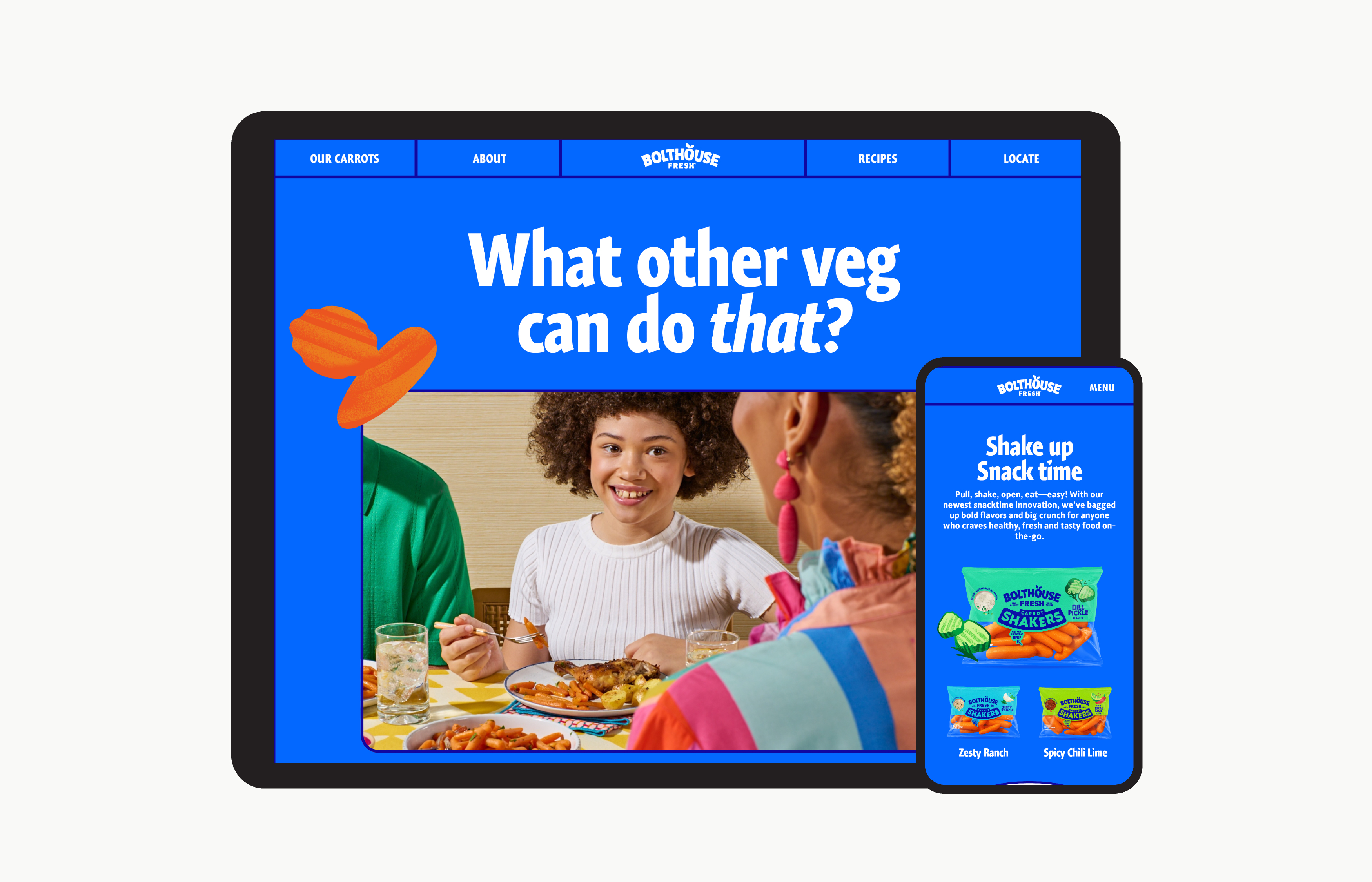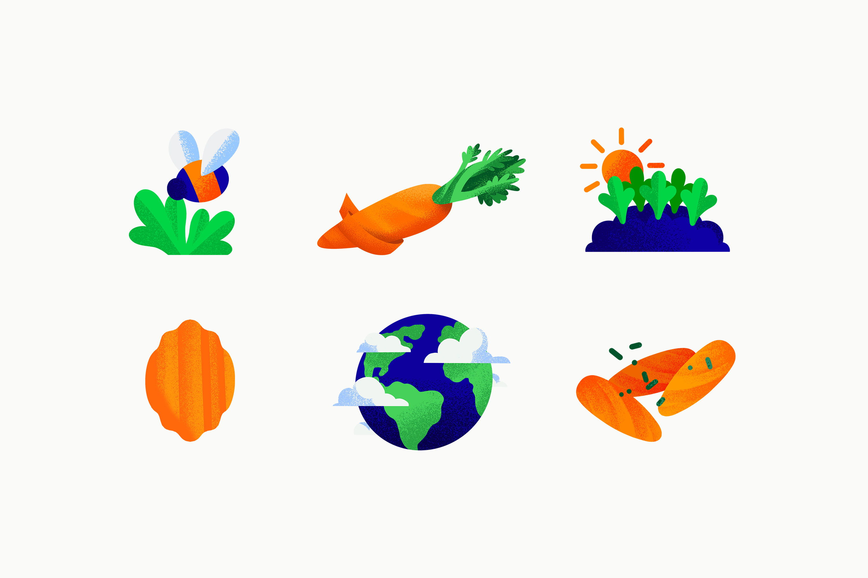 Bolthouse Fresh’s new retro-modern brand and packaging design tells a compelling story of continuity and innovation. We maintained the essence of the iconic blue from the legacy brand, pairing with a vibrant, future-forward color palette. Custom illustrations and an approachable, playful tone pay homage to the brand’s agricultural roots while adding a contemporary twist.